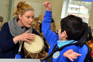 Ros and Catman – Percussion session with the Seashell Trust